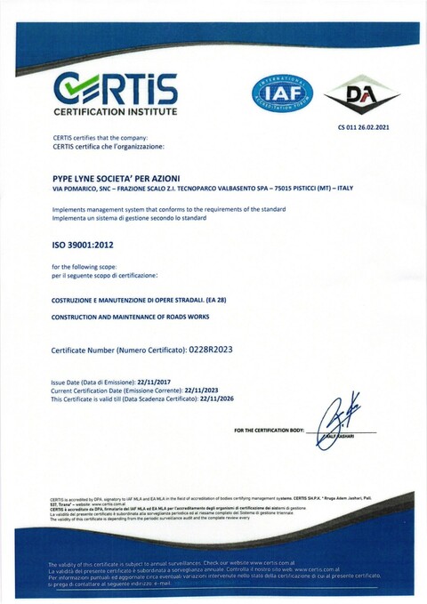 Certificazione 39001:2012