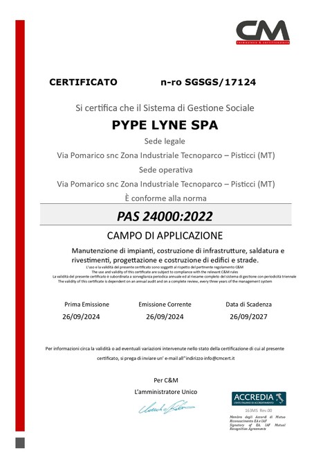 - requisiti per i sistemi di gestione sociali e per rendicontare la propria prestazione in ambito sociale - Certificazione PAS 24000:2022.