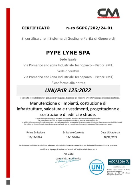 - parità di genere e l’inclusione nei luoghi di lavoro nonché - Certificazione UNI PdR 125:2022;